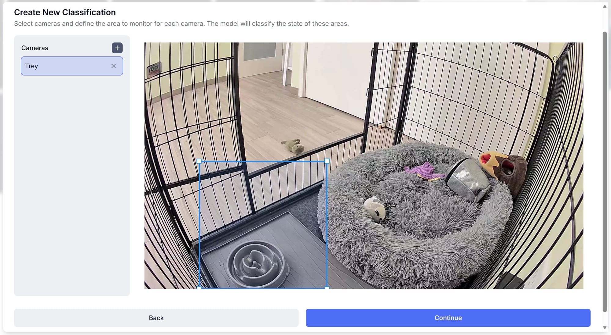 Pick the camera and draw a region of interest (ROI). You want this large enough to capture where the bowl might move, but focused enough to avoid distracting the model with irrelevant background changes.