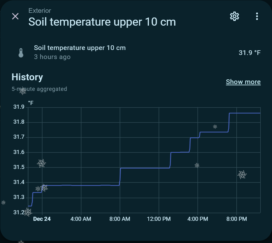 I’ve set up two sensors: one to track rainfall over the last 48 hours and another to monitor the soil temperature in the upper 10cm.